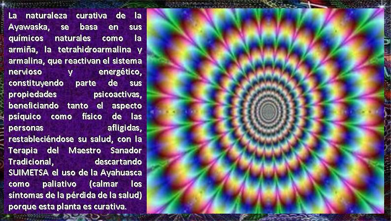 La Ayahuasca era preparada y suministrada por los Maestros Terapistas, exclusivamente para procesos Terapéuticos- Sanadores, práctica ancestral en la Medicina Tradicional Milenaria de los Pueblos Nativos del Amazonas en el Perú.